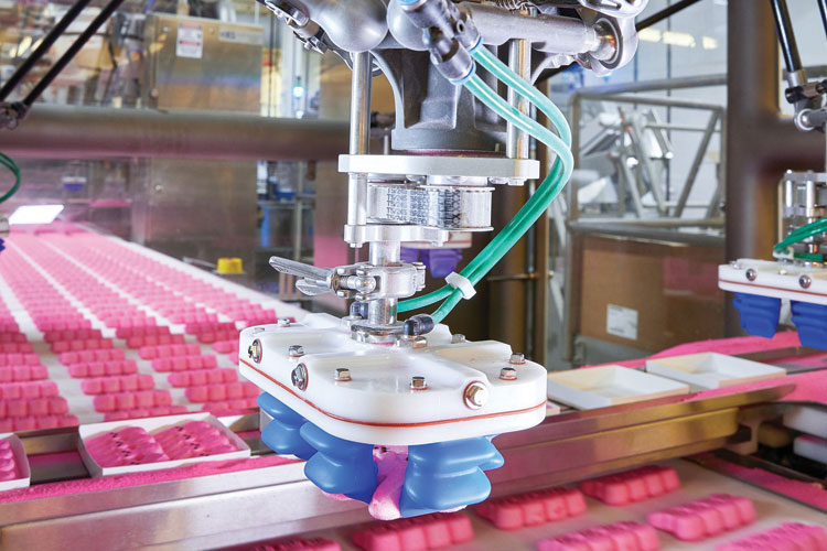 In contrast to mechanical systems, the pneumatically controlled mGrip also handles sensitive products extremely sensitively. For example, baked goods, fruit and vegetables can be placed in trays without damage or removed for quality control. Thanks to the wide range of configuration options, the gripper can safely pick up food with different shapes and forms, such as chicken drumsticks. However, companies outside the food industry that want to pick up nets or bags full of small parts also benefit. This means that fast picking can be realised around the clock without having to keep staff on hand for order picking.