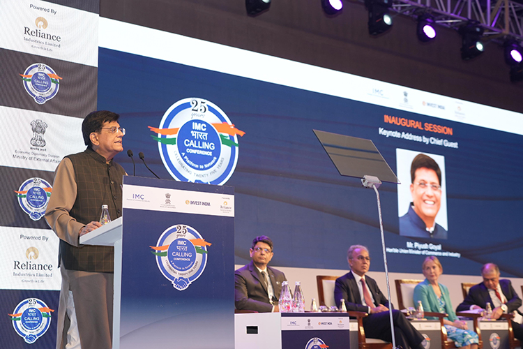 Mumbai, February 27, 2025 – Union Minister of Commerce & Industry, Piyush Goyal, addressed the Inaugural Session of the IMC Bharat Calling Conference, emphasizing India’s commitment to becoming a global investment hub and fostering collaborative economic growth. He highlighted India’s economic resilience, its growing contribution to global trade, and the vast opportunities within the country’s 1.4 billion aspirational young population. Calling upon global investors, he stated, “India is on a transformational journey, and we invite the world to partner with us in this growth story. Our nation contributes 16% of global economic growth, and with the right collaborations, we can unlock even greater potential.”