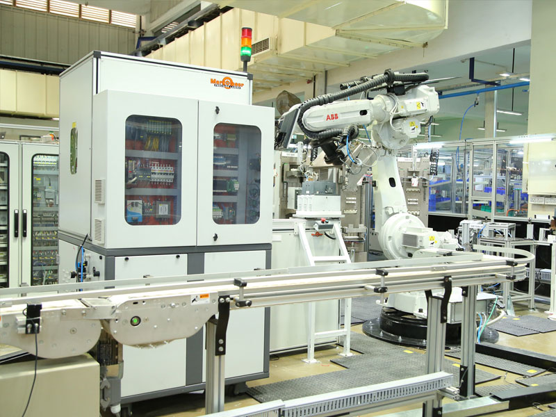 Remote access and wireless communication with Radio Frequency Identification Devices (RFID) manage the production process, work orders and testing parameters. Taking the Make in India initiative to the next level of precision and smart technology, the newest member of the portfolio, Emax 2, includes product line features such as product assembly on track guided vehicles (TGV) powered by electric motors on a closed loop track.