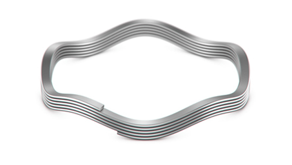4 .Choose a nested wave spring when automatic handling is used during assembly. Other types of springs can be deformed by a robotic arm during a pick-and-place process or can tangle when placed in a hopper for vibrato- ry sorting and feeding. This results in lost time because the parts must be sorted and assembled by hand. Nested springs are ideal for automated pro- cesses because they have no floating ends and the turns sit tightly together, which prevents tangling. The multiple-turn configuration of the neste guarantees the multiple layers stay aligned for consistent loading.wave spring design is also sturdy, perfect for easy pick-and-place installation.