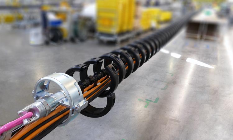 To guide cables safely in hanging applications, igus has developed the e-loop as an alternative to the service loop. This is because the service loop often causes a number of problems: the cables have no guide, have no defined bend radius, cannot move and, in the worst case, break. When servicing or repairing the service loop, the complete system must be replaced, as the cables are sealed together. “With the e-loop we have developed an alternative to the service loop. The three-dimensional energy supply system combines the advantages of a polymer energy chain with a high strength pull rope. The rope absorbs the tensile forces inside the chain and transmits them to the mounting brackets. This means that the cables remain completely strain-relieved”, says Tim Schneebeck, Industry Manager Oil & Gas at igus GmbH. The modular e-chain made of high-performance polymer offers a defined bend radius at all times and withstands vibrations and shocks thanks to PU protectors.