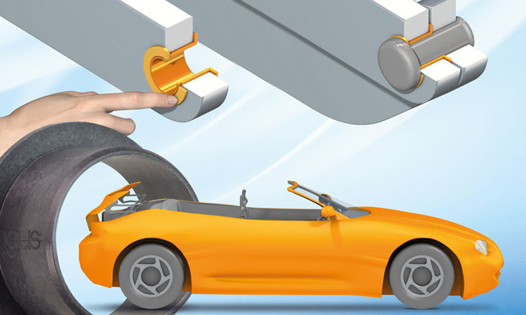 Wind, sunshine and a lonely winding road. This is how you imagine a relaxed ride in a convertible. But in wind, rain and city traffic, the driver is happy to be able to close the car’s top quickly. This requires low-clearance multi-link hinges. The challenge with the aerodynamic components lies in their manufacture. In practice, the holes in the guides are only roughly punched, with a limited amount of fine cuts. In addition, there are rivets and plain bearings, which also have to operate without clearance throughout the entire system to avoid noise and rattling. Metallic rolled PTFE bearings have hitherto been the default, but they have to be recalibrated with great effort. This is where igus, the motion plastics specialist, comes into play with its plastic plain bearings, such as those made of the new iglidur F300 material. “The disadvantage of plastic plain bearings – that they become soft at high temperatures – is an advantage here,” explains Markus Feth, Head of Automotive at igus.