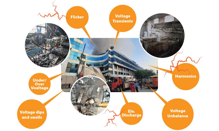 The pandemic has put stress on the Hospitals like never before. Almost unprepared for the scale and nature of COVID’s medical emergency, it is natural for the Hospital’s Management to prioritize the most urgent and important objective – treatment of patients. And often, amongst all the essential tasks, it is the minor ones that generally get the least priority and lead to trouble later. Thus, poor Power Quality (PQ) and electrical safety issues are bound to receive less attention in a situation where patients are increasingly struggling for medication and treatment. But the seemingly minor electrical issues have taken a severe turn and caused a fire in the establishments. Hospitals have been tirelessly operating in the pandemic, constantly stressed for resources including space, medication and care.