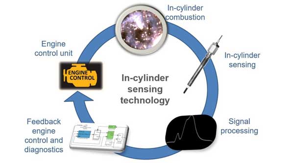 The in-cylinder combustion sensor enables performing multiple sensing tasks and real-time engine management by providing feedback to the electronic control of the engine. The volume production system results in low initial and maintenance cost compared to pressure transducers. Remote monitoring and diagnostics are also possible which help reduce the cost of inspection and repair over the lifetime of the engine.