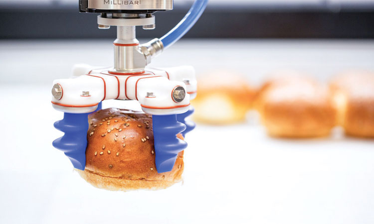Constructed in hygienic design, the new mGrip finger gripper from Schmalz fulfils the highest cleanliness standards. Thanks to its unique geometry, it picks up delicate products such as vegetables or baked goods precisely and gently. This enables food manufacturers to automate their handling tasks with process reliability.