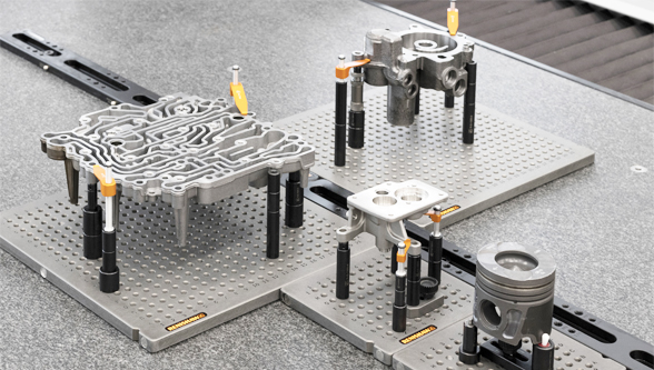 The QuickLoad plates use Renishaw’s industry leading hard-coat anodised, alpha-numerically labelled aluminum base plates available in M6 with M4,M8 and ¼-20 thread sizes available upon request. When used with the company’s extensive selection of labelled modular components and Fixture Builder software, the alpha-numeric plates enable the user to set up parts the same way every time.