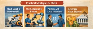 These Indian SME case studies clearly show that robotic automation is neither a distant fantasy nor an unaffordable luxury. With the right task-specific cobot deployments, modular integration, and incremental investment approach, SMEs in India are already reaping measurable gains in productivity, quality, and competitiveness.