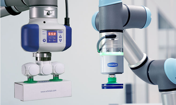 In order for systems operators to use their lightweight robots in a safe, economical and reliable way, the grippers must meet certain requirements. Cobots can weigh between 3 and 25 kilograms, depending on type. “In order to achieve maximum lift capacity, the gripper must be as light as possible,” explains Dr. Kurt Schmalz. Round shapes and design that complies with ISO TS 15066 – a standard that regulates work between human beings and collaborative industrial robots – reduce potential sources of injury during use. Moreover, it must be possible to quickly and simply integrate the gripping systems and allow for continuous condition monitoring. J. Schmalz GmbH considers these characteristics – communicative, flexible, intuitive in terms of configuration, and available at short notice – during the development phase of its vacuum components for lightweight robots.