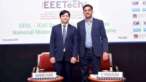 Addressing the impact motors and motor-driven systems have on the energy consumption in the country,International Copper Association India participated in the 3rd Edition of CII EEETech held on 15th November at India Habitat Centre, New Delhi. ICA India’s Program Manager, Motors, Mr. Abhishek Dhupar presented on adoption of Energy Efficient Motors and their standards while EESL’s DGM, Mr. K Thirumurugan presented on National Motor Replacement Program during the special plenary session. The conference on Energy Efficiency, Environment & Technology was focused on the theme: Driving Energy Efficiency Through Innovations & Collaborations.