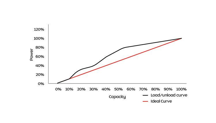 In theory, power consumption should follow air consumption proportionally (the ideal efficiency curve). In reality, demand fluctuates sharply and unpredictably. When this happens, traditional fixed-speed compressors operate using load/unload control between cut-in and cut-out pressures. On the plant floor, the pressure band between cut-in and cut-out is often already narrow. The  downstream pressure drops across filters, dryers, and piping make the effective usable pressure band even narrower. As a result, even a small 5-10% demand variation can trigger frequent cycling, forcing the compressor to repeatedly shift between load and unload.